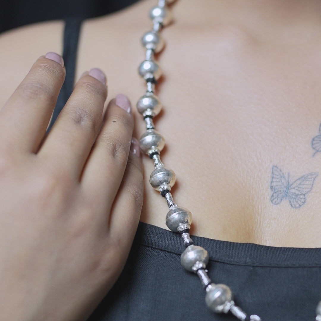 Discover our 92.5 pure silver mala/haar collection, featuring: