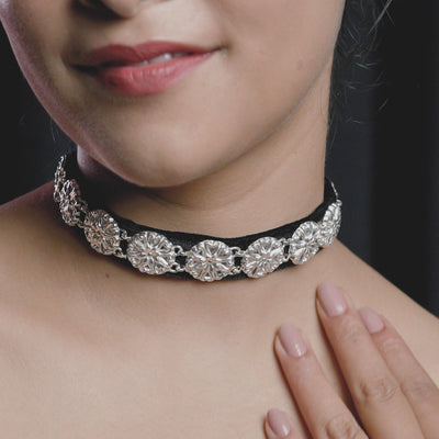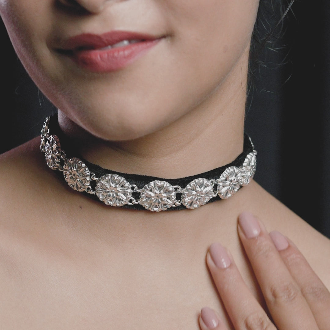 Each floral piece is hand-moulded using the Thappa technique — where silver is shaped in antique moulds and joined together to form a flexible chain. -