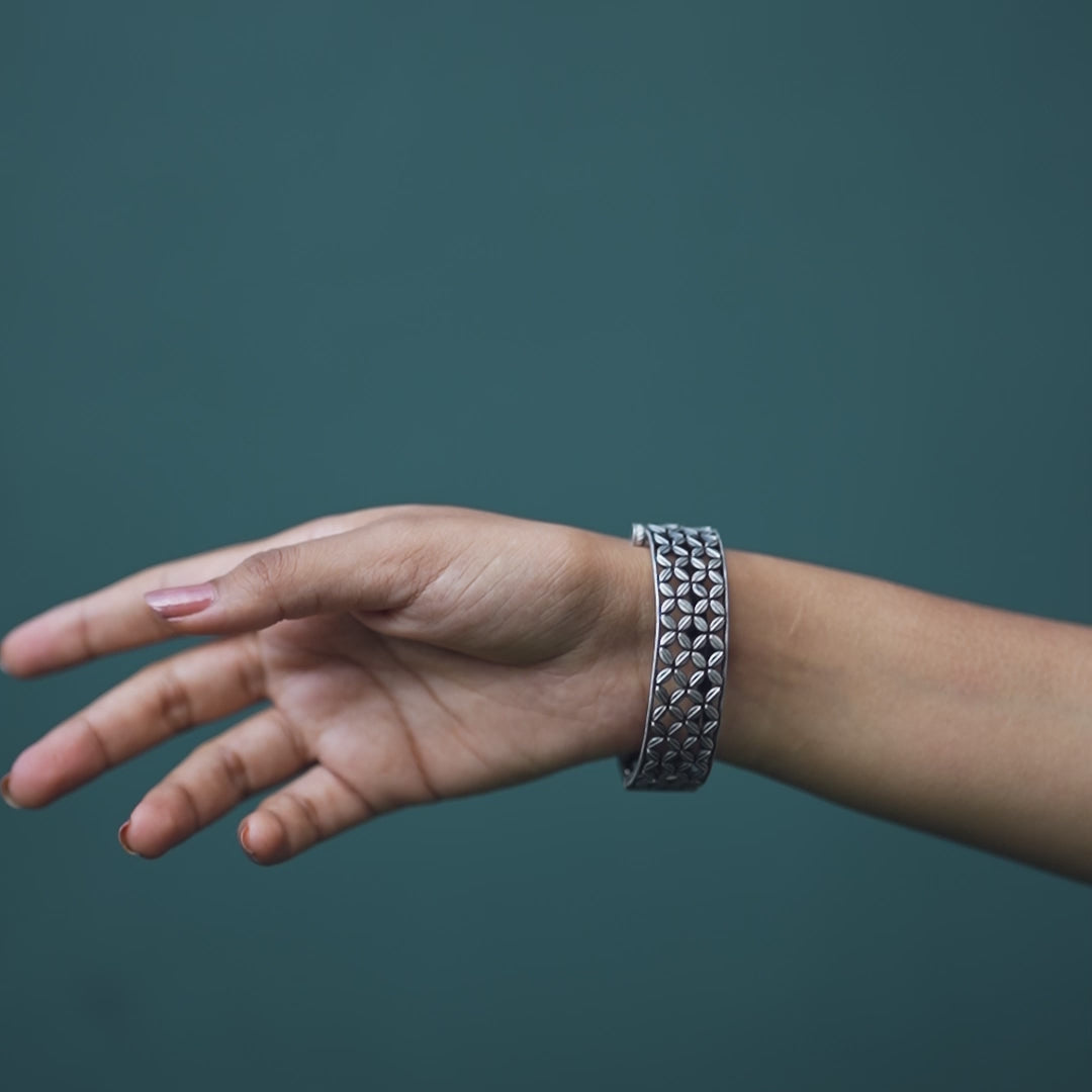 Oxidised finish gives silver jewellery a darker, antique look that highlights detailed craftsmanship, while non-oxidised finish offers a brighter, polished appearance. Both finishes are offered by Ejaa to match different styling preferences.