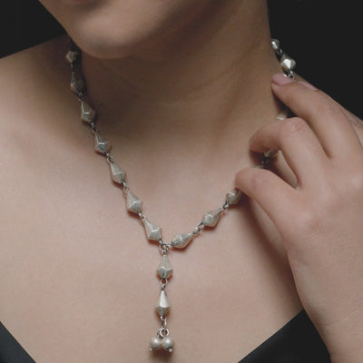 Bindrani Haar — A contemporary take on traditional Pahadi forms, featuring faceted silver beads inspired by mountain crystals.